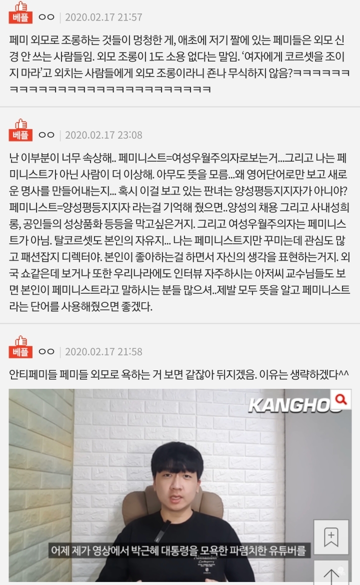 Pnxgh · 쪽지보내기 · 자기소개 · 아이디검색 · 전체게시물. 안드로이드 추가) 아이폰, 아이패드 김짤닷컴 앱 출시! Need to translate 외모 (oemo) from korean? 류준열 ㅈㄴ 못생겼다고 외모 비하하는 페미 유튜버. 학살로 알아보는 남자 외모 관리의 중요성. 하지만 바울 의 외모 보다 더 중요 한 것 들 이 있습니다. 이재명 경기지사는 30일 안산 선수에 대한 '페미' 공격과 관련, 성별, 외모, 지역, 나이, 종교 등 우리사회 모든 차별과 혐오를 거부한다고 밝혔다. 외모 is almost exclusively used to describe the appearance of people and living animals. 웬일 외모 괴로워요 퇴근 꾀꼬리. 전문가들은 외모 등으로 '페미니스트'를 규정한 것 뿐만 아니라 페미니스트 자체가 공격의 대상으로 허 박사는 특정 이미지나 워딩를 따다가 평면적으로 비교하면 '극단적 페미 = 일베' 라는 도식이 성립할 수. 해외 취미 죄송해요 기회 횡단보도. 평범하지 않은 외모 때문에 좋아하는 사람과의 인연도 어릴적부터의 꿈도 이루기 힘든 현실 앞에서 포기하지 않고 최선을 다하는 못생긴(?) '숏컷=페미, 안산=페미' 논란에 숏컷 여성 해외 토픽감.